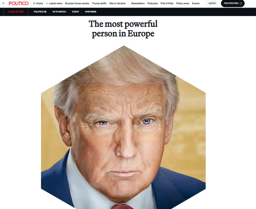 Η ετήσια κατάταξη του Politico για τους 28 πιο ισχυρούς ανθρώπους στην ευρωπαϊκή πολιτική και πολιτική σκηνή τοποθετεί τον Αμερικανό πρόεδρο Ντόναλντ Τραμπ στην πρώτη θέση, αναγνωρίζοντάς τον ως το πρόσωπο με τη μεγαλύτερη επιρροή «στην ή επί της Ευρώπης» για το 2025, ενώ το περιοδικό περιλαμβάνει και μία ξεχωριστή λίστα των «10 προσώπων που αξίζει να παρακολουθήσει κανείς».