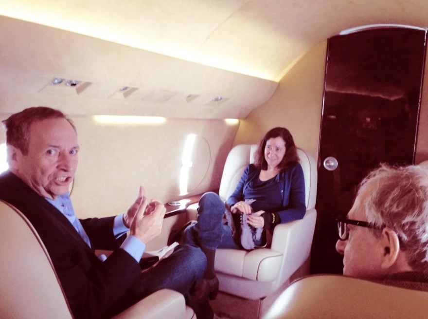 Ο πρώην πρόεδρος του Χάρβαρντ Λάρι Σάμμερς και ο δικηγόρος Άλαν Ντερσόβιτς εμφανίζονται και αυτοί σε φωτογραφίες.