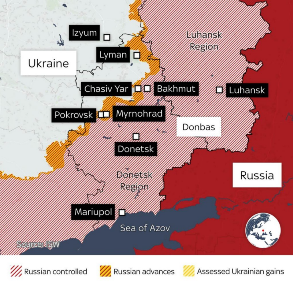 Υπενθυμίζεται ότι την περασμένη εβδομάδα ο αρχηγός των ρωσικών ενόπλων δυνάμεων δήλωσε πως οι ρωσικές δυνάμεις προελαύνουν κατά μήκος ολόκληρης της γραμμής του μετώπου και ότι έχουν αναπτυχθεί πρόσθετες εφεδρείες σε πόλεις της περιφέρειας του Ντονέτσκ.