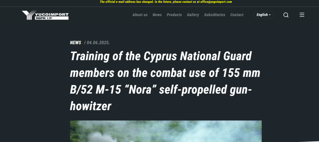 Η Κύπρος, συνεργάζεται με την Yugoimport SDPR, η οποία προμήθευσε την Εθνική Φρουρά, με τα αυτοκινούμενα πυροβόλα Nora B-52 και μόλις πρόσφατα τους πολλαπλούς εκτοξευτές πυραύλων TAMNAVA