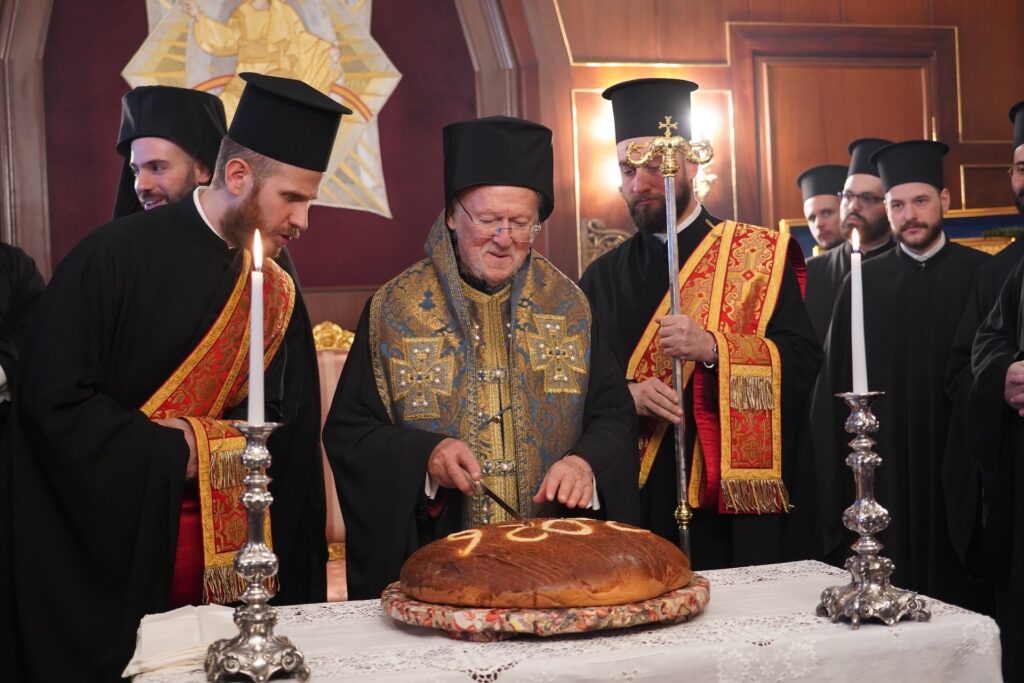 Ακολούθως, ο Παναγιώτατος, στην Αίθουσα του Θρόνου, ευλόγησε την παραδοσιακή Αγιοβασιλόπιττα και την μοίρασε προς όλους τους παρισταμένους κληρικούς και πιστούς από την Πόλη και το εξωτερικό.