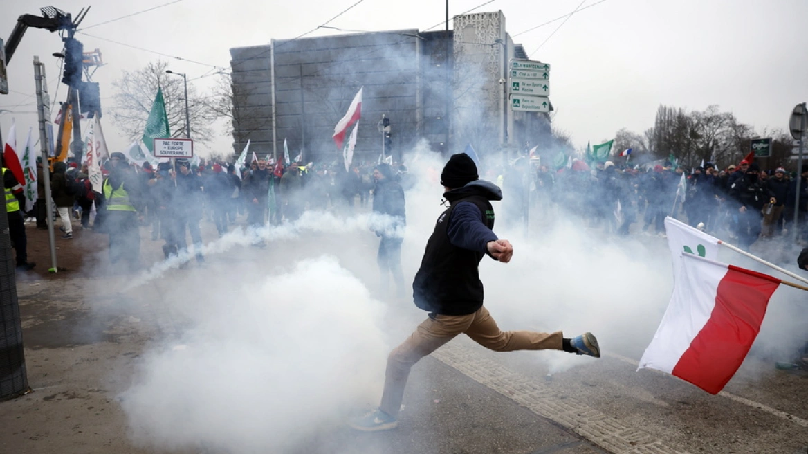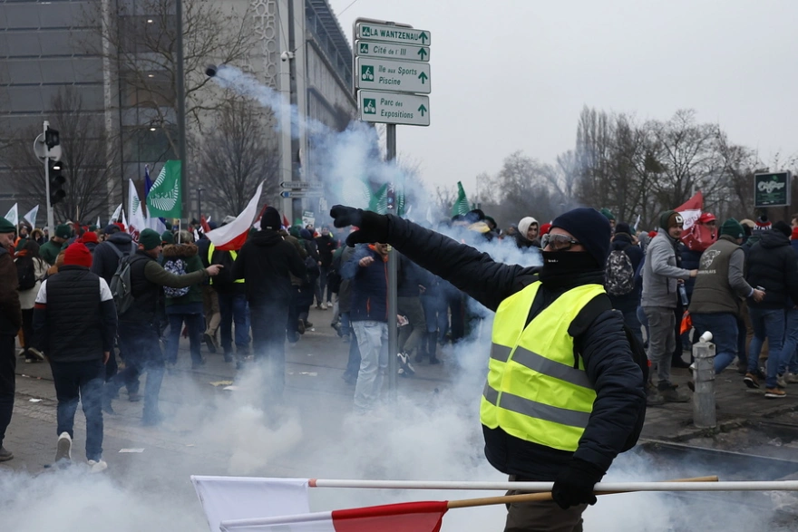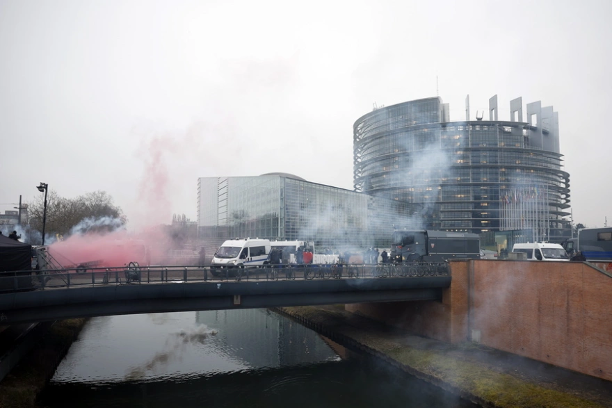 Κρατώντας σημαίες και αναμμένα καπνογόνα, χιλιάδες αγρότες διαδήλωσαν σήμερα έξω από την έδρα του Ευρωπαϊκού Κοινοβουλίου στο Στρασβούργο, διαμαρτυρόμενοι για τη συμφωνία της ΕΕ με τη Mercosur, παραμονή της ψηφοφορίας με αντικείμενο την προσφυγή στη δικαιοσύνη.
