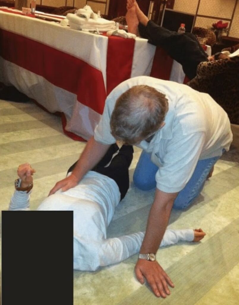 Σύμφωνα με τις περιγραφές που συνοδεύουν τις φωτογραφίες, σε ορισμένες διακρίνεται άνδρας που μοιάζει με τον πρώην δούκα της Υόρκης να σκύβει πάνω από τη γυναίκα, ενώ σε μία από τις εικόνες κοιτά απευθείας τον φακό.