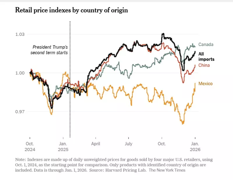 Δεν αποτελεί έκπληξη το γεγονός ότι πέρυσι οι δασμοί αύξησαν τις τιμές των εισαγόμενων αγαθών. Η οικονομική εικόνα δείχνει ότι οι τιμές άρχισαν να ανεβαίνουν, ιδιαίτερα μετά την ανακοίνωση σαρωτικών παγκόσμιων δασμών από τον Τραμπ τον Απρίλιο, αναστρέφοντας μια τάση πτώσης των τιμών τους προηγούμενους μήνες.