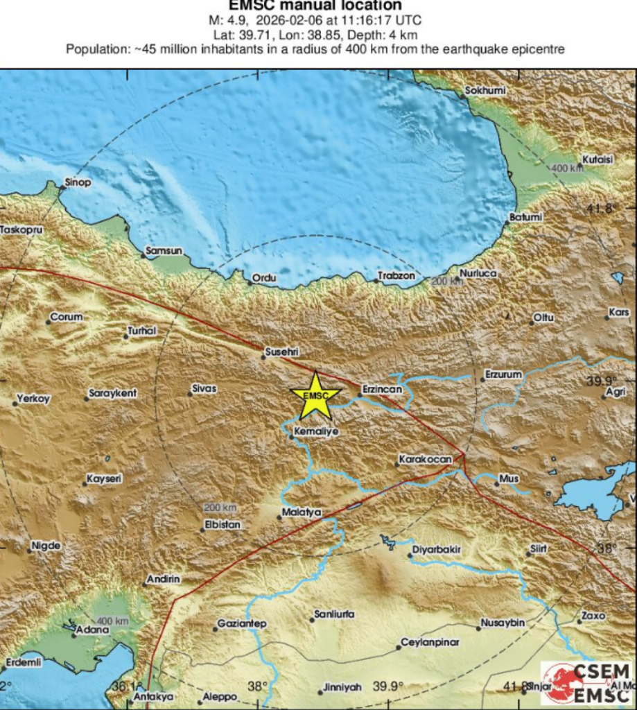 Σεισμός 4,9 Ρίχτερ σημειώθηκε την Παρασκευή (6/2) στην ανατολική Τουρκία. Να σημειωθεί ότι, σαν σήμερα, πριν τρία χρόνια σημειώθηκε ο σεισμός που στοίχισε τη ζωή σε χιλιάδες ανθρώπους.