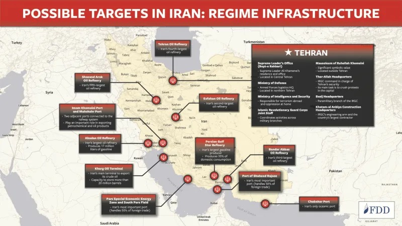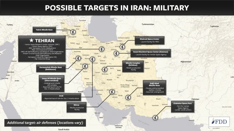 Οι ΗΠΑ έχουν στο παρελθόν στοχοποιήσει τη Islamic Revolutionary Guard Corps (IRGC), ειδικά μονάδες πυραύλων και drone. Πιθανοί στόχοι: