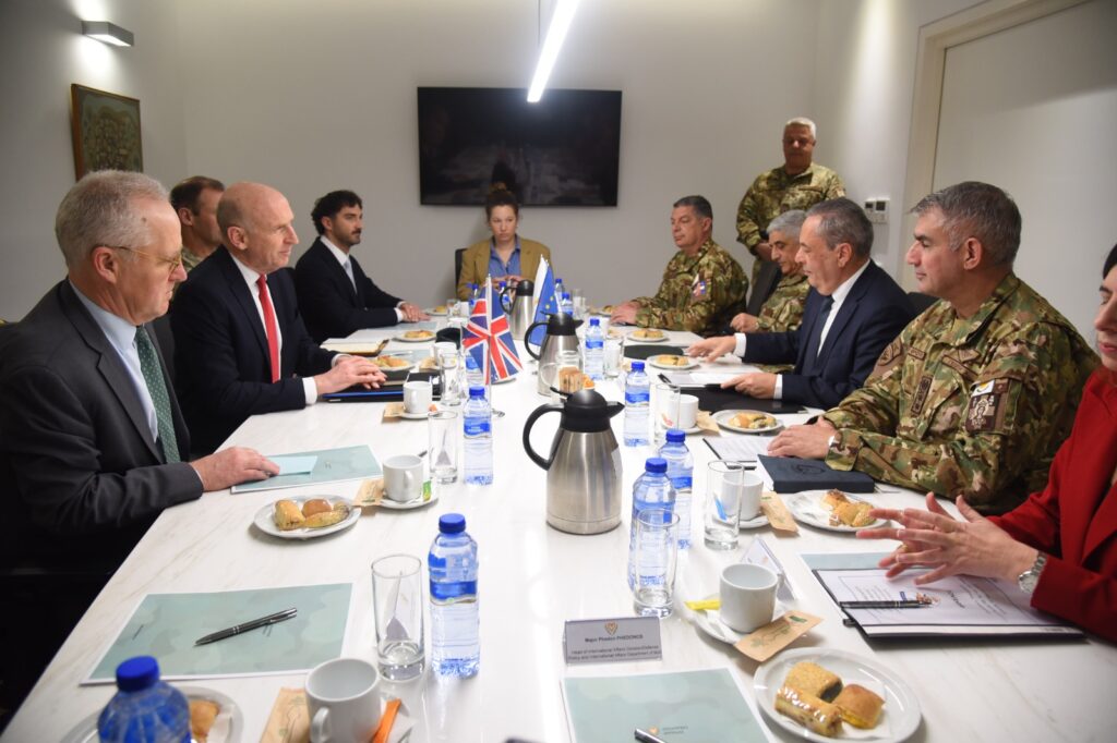 Σήμερα το πρωί ο υπουργός Άμυνας Βασίλης Πάλμας είχε συνάντηση με τον Βρετανό ομόλογό του, ανεφέρε ο Κυβερνητικός Εκπρόσωπος, Κωνσταντίνος Λετυμπίωτης. Έγινε ανταλλαγή και εκτίμηση της περιφερειακής κατάστασης αλλά και συνεργασίας σε πολιτικό επίπεδο. Ο Βρετανός ΥΠΑΜ ενημέρωσε για τις αποφάσεις της Κυβέρνησης του Ηνωμένου Βασιλείου και της έλευσης HMS Dagon και ελικοπτέρων με anti – drone.