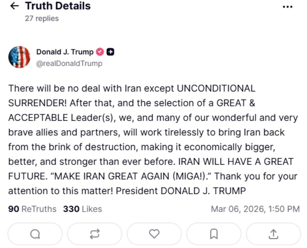 8:50 – Τραμπ: «Χάσιμο χρόνου» η ανάπτυξη χερσαίων δυνάμεων των ΗΠΑ στο Ιράν – «Έχουν χάσει τα πάντα»