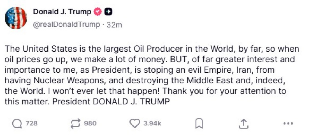 Το Ιράν είναι «κοντά στην ήττα. Αυτό δεν πάει να πει ότι θα σταματήσουμε αμέσως, αλλά αυτοί θα το κάνουν», υποστήριξε ο ρεπουμπλικάνος δισεκατομμυριούχος, προφανώς αναφερόμενος στις στρατιωτικές επιχειρήσεις.