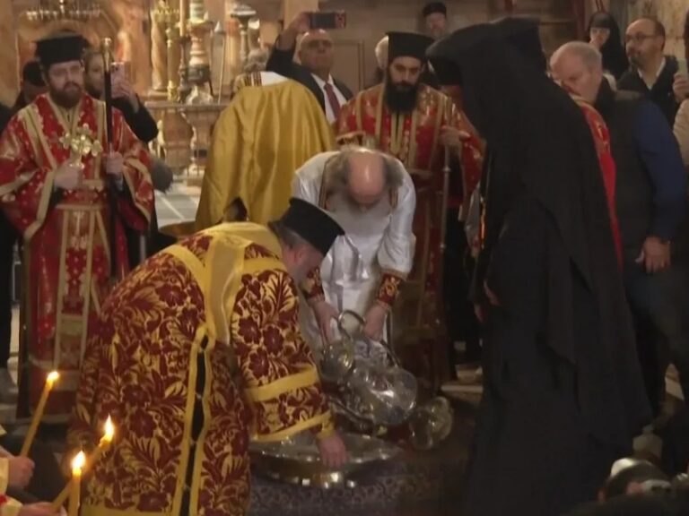 Πιστοί από όλο τον κόσμο συγκεντρώθηκαν στον Πανάγιο Τάφο για να σηματοδοτήσουν την έναρξη της Μεγάλης Εβδομάδας των Ορθοδόξων, με την παραδοσιακή τελετή του Νιπτήρος.
