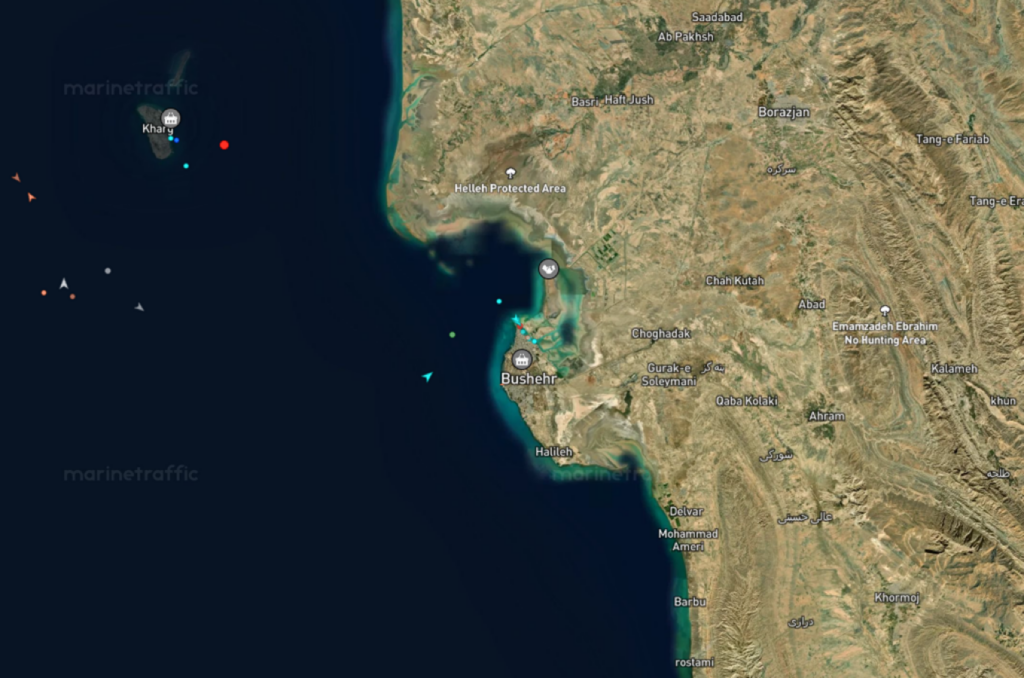 Σύμφωνα με δεδομένα θαλάσσιας παρακολούθησης, τουλάχιστον 30 πλοία βρίσκονταν συγκεντρωμένα γύρω από το λιμάνι του Μπαντάρ Αμπάς, κοντά στα Στενά του Ορμούζ, και το λιμάνι του Μπουσέρ, βορειότερα στον Κόλπο.