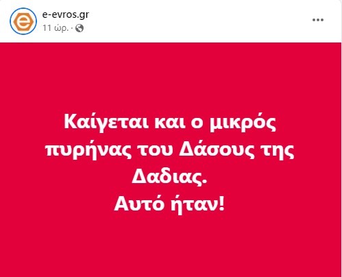 Ενδεικτική της χαοτικής κατάστασης που επικρατεί είναι η εικόνα που δημοσιεύει το e-evros που δείχνει το πύρινο μέτωπο μια ανάσα από τον οικισμό της Δαδιάς και το δάσος να έχει παραδοθεί στις φλόγες.