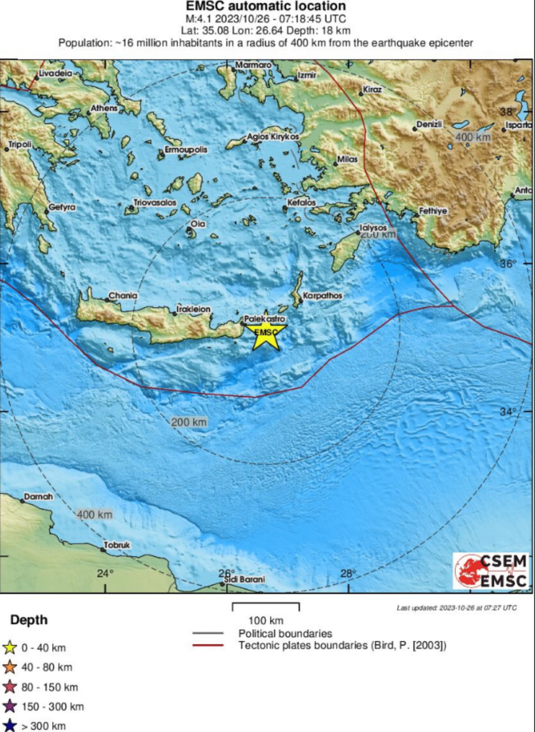 Το Ευρωμεσογειακό Σεισμολογικό Ινστιτούτο κατέγραψε τη δόνηση στα 4,1 Ρίχτερ.