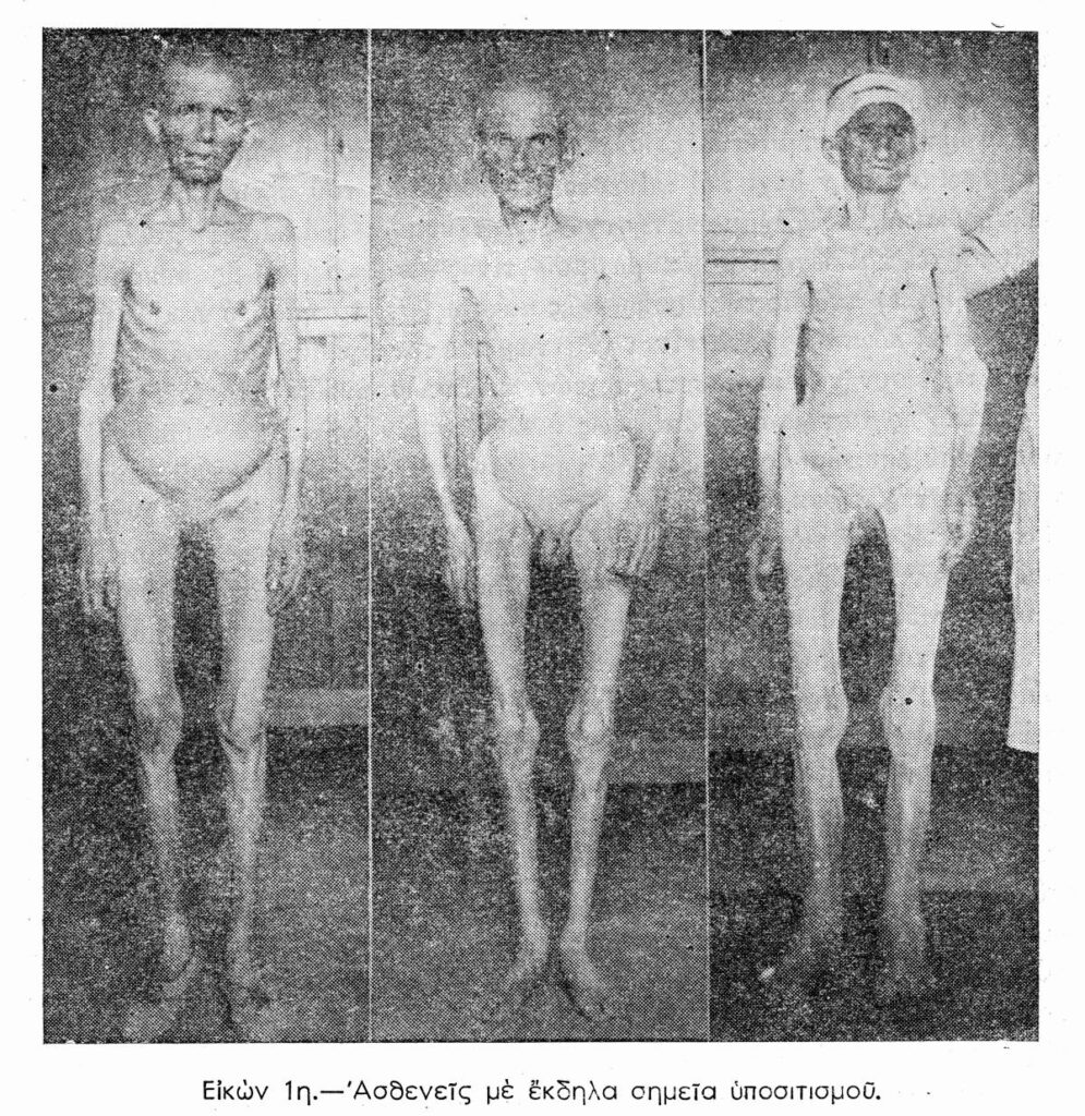 Αποκαλύπτει δε ότι: «Εντός ολίγων μηνών τα πλείστα των εις τα Νοσοκομεία υπό συνήθεις συνθήκας παρατηρουμένων νοσημάτων εξηφανίσθησαν και αντικατεστάθησαν υπό των εκδηλώσεων της πείνης, αίτινες από του Νοεμβρίου και ύστερον προσλαμβάνουν επιδημικόν χαρακτήρα, ως να επρόκειτο περί λοιμώδους νοσήματος».