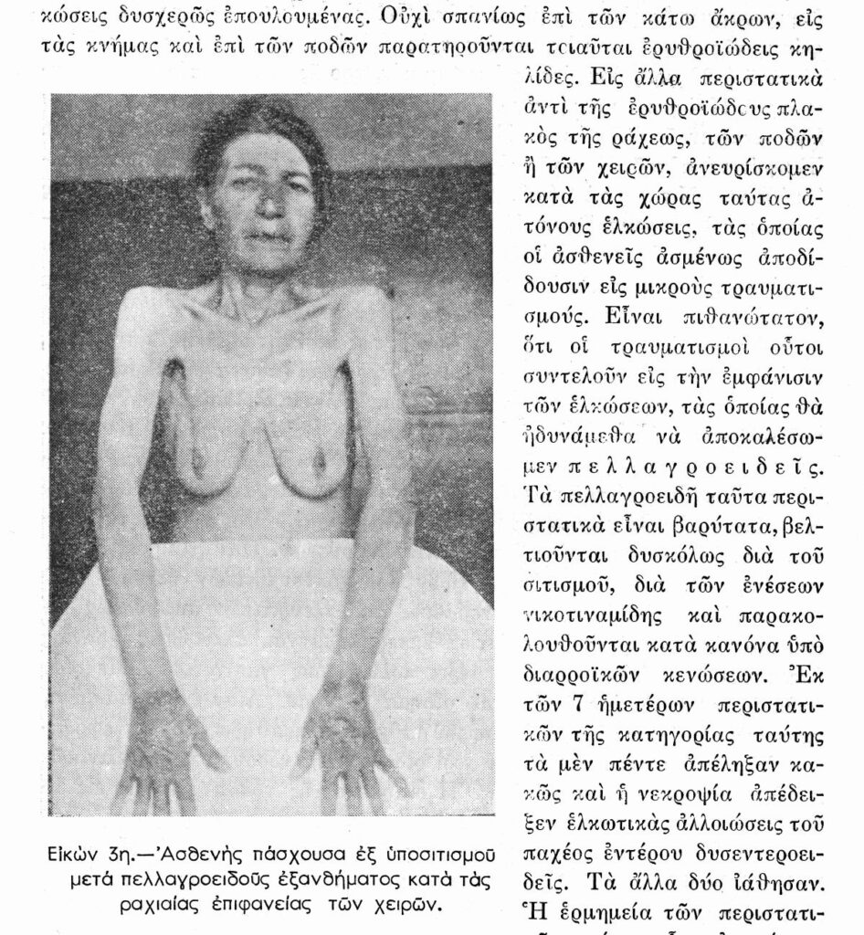Εξάνθημα «πελλάγρας» (μορφή αβιταμίνωσης, δηλαδή έκζεμα που δημιουργείται από την έλλειψη βιταμίνης Β3)