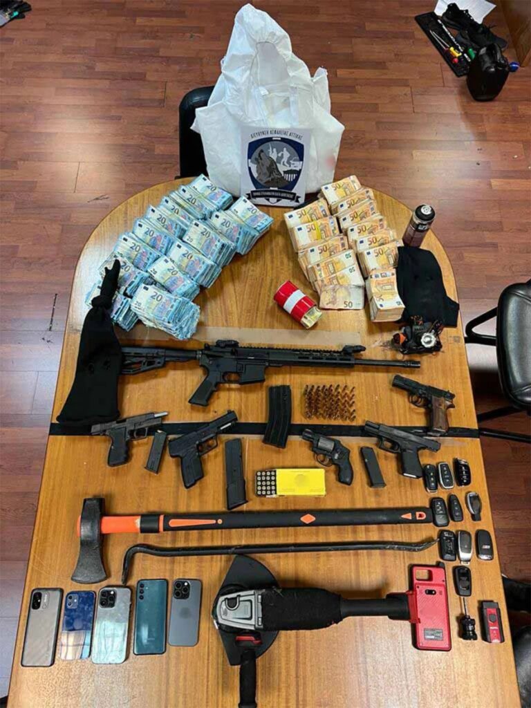Παράλληλα, κατά τη διάρκεια των ερευνών, συνελήφθη συγγενικό πρόσωπο ενός εκ των δραστών, για παράβαση του νόμου περί όπλων, αφού εντός της οικίας του, την οποία επισκεπτόταν συχνά ο εν λόγω δράστης, βρέθηκαν και κατασχέθηκαν -5- πιστόλια και πλήθος φυσιγγίων.