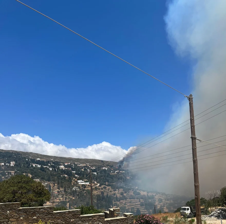 Σε πλήρη εξέλιξη είναι η φωτιά που ξέσπασε το μεσημέρι του Σαββάτου, αυτήν τη φορά στην περιοχή Στραμπουργιές της Άνδρου.