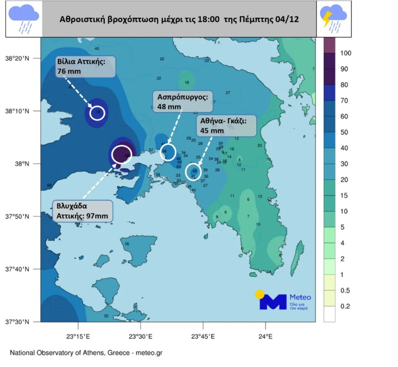 Εν τω μεταξύ το meteo ανακοίνωσε τα ύψη βροχής που έπεσαν στην Αττική το απόγευμα της Πέμπτης.