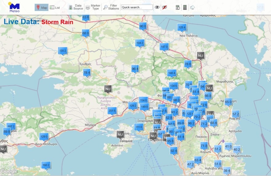 Δείτε χάρτη με τις καταγραφές της ποσότητας του νερού στην Αττική
