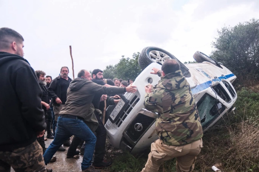 Οι αγρότες «έσπασαν» τα μπλόκα της ΕΛ.ΑΣ, με τα ΜΑΤ να απομακρύνονται από το σημείο και κινήθηκαν προς το αεροδρόμιο Χανίων. Μάλιστα αναποδογύρισαν ένα περιπολικό που ήταν στημένο στο μπλόκο της αστυνομίας, ενώ βανδάλισαν και μία κλούβα των ΜΑΤ κατά τη διάρκεια των επεισοδίων.