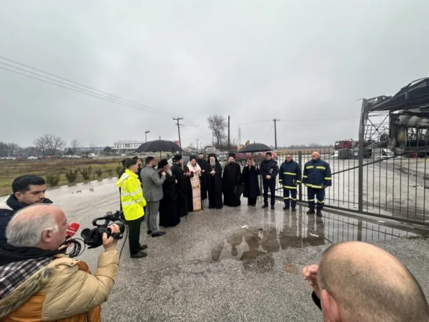 Στον τόπο όπου εκτυλίχθηκε η ανείπωτη τραγωδία, στην μπισκοτοβιομηχανία «Βιολάντα» τελέστηκε σήμερα το πρωί τρισάγιο υπέρ αναπαύσεως των ψυχών των πέντε γυναικών που έχασαν τη ζωή τους, σε κλίμα βαθιάς συγκίνησης και σιωπής από τον Μητροπολίτη Τρίκκης, Γαρδικίου και Πύλης κ. Χρυσόστομο.