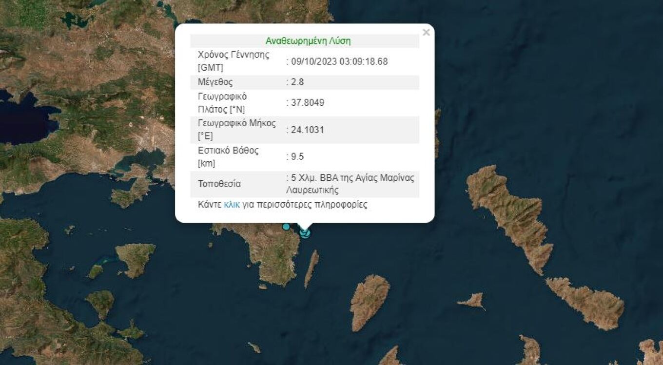 Το επίκεντρο του σεισμού εντοπίστηκε στα 5 χλμ. βόρεια της Αγίας Μαρίνας Λαυρεωτικής #philenews