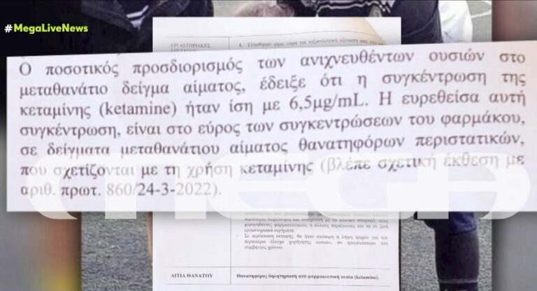 Σε θανατηφόρο δηλητηρίαση από τη φαρμακευτική ουσία της Κεταμίνης, αποδίδεται ο θάνατος της Τζωρτζίνας, σύμφωνα με το επίσημο πόρισμα του ιατροδικαστή Σωτήρη Μπουζιάνη, το οποίο...