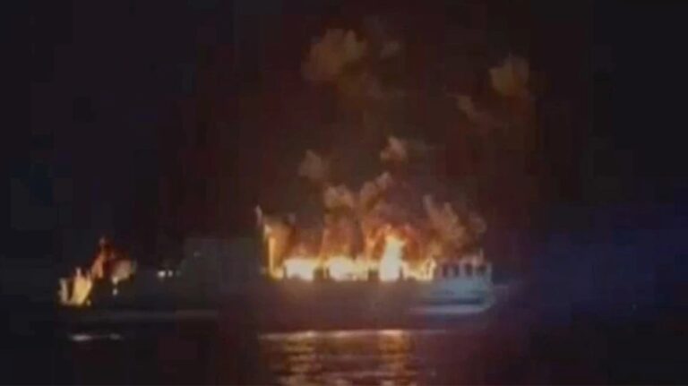 Ολοσχερώς καίγεται το επιβατηγό-οχηματαγωγό πλοίο Euroferry Olympia του ομίλου Grimaldi, αλλά οι 237 επιβάτες και τα 51 άτομα πλήρωμα κατάφεραν να το εγκαταλείψουν εγκαίρως.
