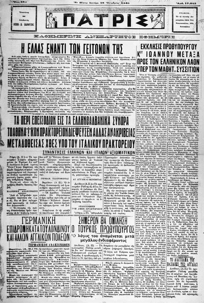 Ηταν λίγο μετά τις 03:00 τα ξημερώματα της 28 Οκτωβρίου του 1940, όταν τότε ιταλική κυβέρνηση έστελνε τελεσίγραφο στην Ελλάδα, δια του Ιταλού Πρέσβη στην...