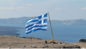 Με έναν ιδιαίτερο τρόπο γιόρτασαν την εθνική εέτειος της 28ης Οκτωβρίου στη Σαντορίνη, υψώνοντας τη μεγαλύτερη ελληνική σημαία με γερανό.
