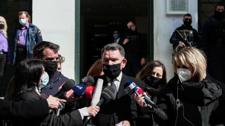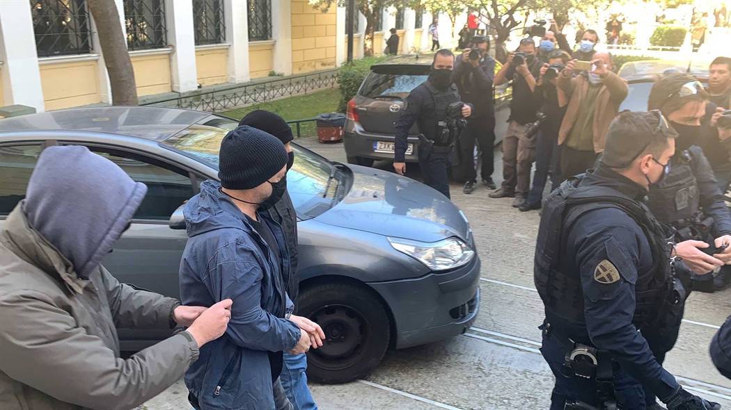 Τα φλας από τα κλικ των φωτογράφων και τα φώτα από τις κάμερες αργά τα ξημερώματα της Παρασκευής γύρω από τους αστυνομικούς που μετέφεραν τον Δημήτρη...