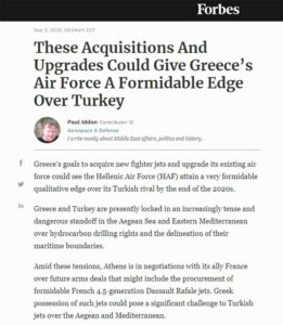 Για αναβάθμιση της ελληνικής Πολεμικής Αεροπορίας έναντι της τουρκικής, κάνει λόγο το περιοδικό «Forbes», καθώς με την αγορά των γαλλικών αεροσκαφών Rafale και την αναβάθμιση των...