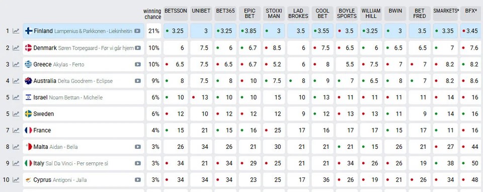 Ωστόσο, η Δανία με το τραγούδι «Før vi går hjem» του Søren Torpegaard Lund προσπέρασε την ελληνική συμμετοχή, που πλέον είναι τρίτη στις προβλέψεις.