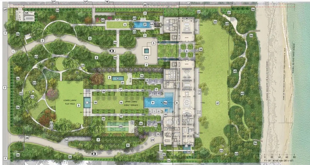 Τα σχέδια προσφέρουν μια πρώτη ματιά στα πολυτελή σχέδια, με μια περιοχή με γκαζόν που οδηγεί σε μια υπέροχη πισίνα και ένα κτίριο με παράθυρα και στις δύο πλευρές που προσφέρουν μαγευτική θέα στον Ατλαντικό Ωκεανό, δημιουργώντας μια γαλήνια και γραφική όαση. Το κτήμα θα διαθέτει επίσης αρκετούς κήπους, ειδικά διαμορφωμένους.