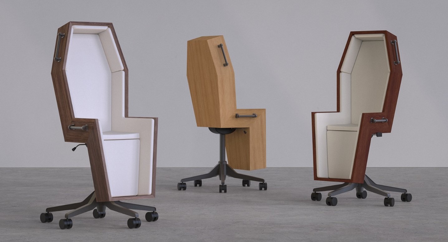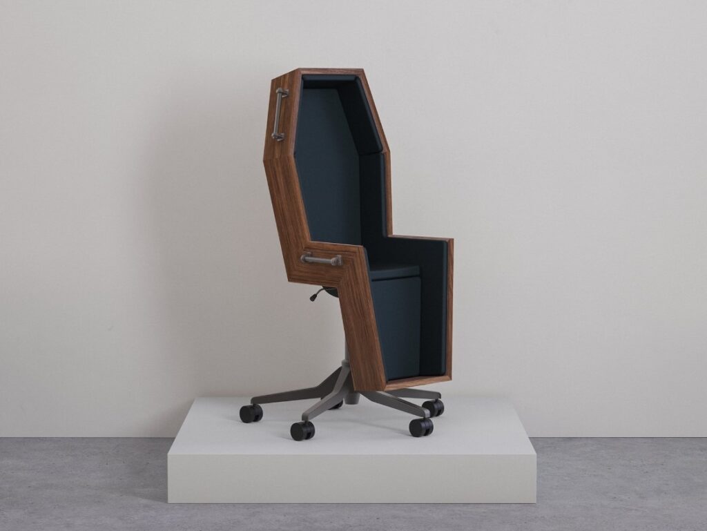 Το σχέδιο με το όνομα «The Last Shift Office Chair» φέρει έντονα στοιχεία από τον σχεδιασμό ενός φερέτρου, ενώ το εσωτερικό είναι κατασκευασμένο από ξύλο. Δεν διακρίνεται κανένα μαξιλάρι στο εσωτερικό της, κάτι που αμφισβητεί το πόσο αναπαυτική είναι.
