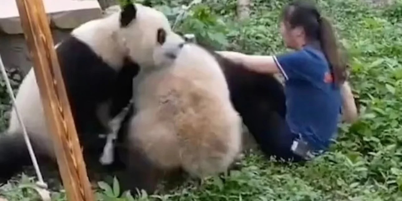 Κάμερα κατέγραψε τη φοβερή στιγμή που δύο πάντα επιτίθενται σε μία φύλακα ζωολογικού κήπου μπροστά σε σαστισμένους θεατές σε ζωολογικό κήπο στην Κίνα.