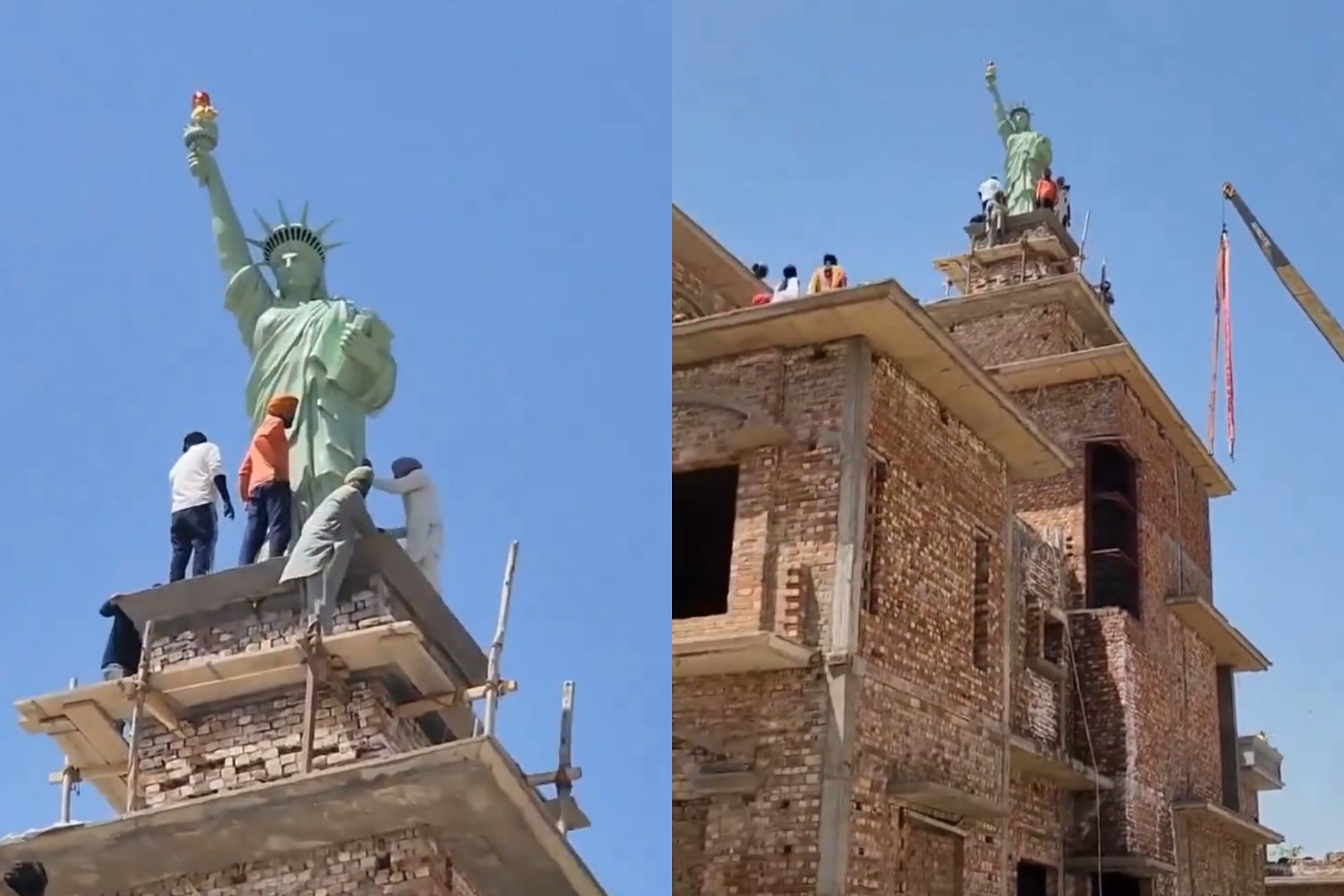 Ένα βίντεο που αναρτήθηκε στο X και έχει γίνει viral, δείχνει το αντίγραφο του αγάλματος να τοποθετείται στη σκεπή ενός σπιτιού.