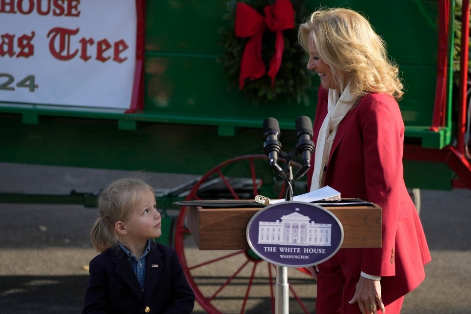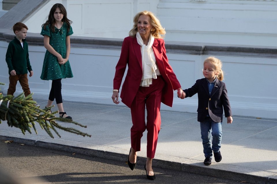 Τα τελευταία τους Χριστούγεννα στον Λευκό Οίκο θα γιορτάσουν oι Μπάιντεν, με την Πρώτη Κυρία, Τζιλ να καλωσορίζει το φετινό χριστουγεννιάτικο δέντρο παρέα με τον εγγονό της.