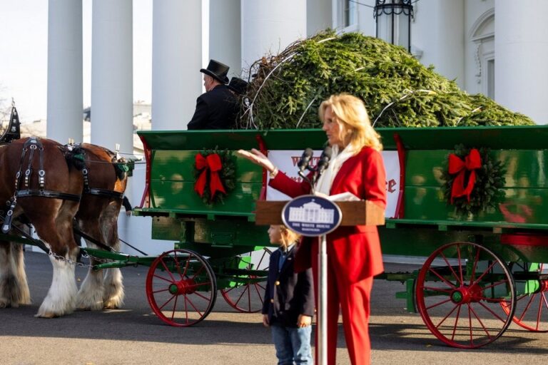 Τα τελευταία τους Χριστούγεννα στον Λευκό Οίκο θα γιορτάσουν oι Μπάιντεν, με την Πρώτη Κυρία, Τζιλ να καλωσορίζει το φετινό χριστουγεννιάτικο δέντρο παρέα με τον εγγονό της.