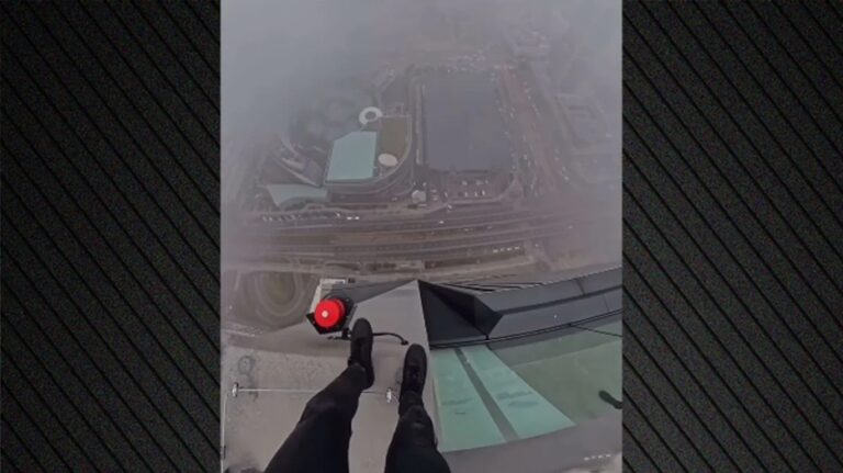 Το εγχείρημα εκτέλεσε ο Πολωνός BASE jumper, γνωστός στα μέσα κοινωνικής δικτύωσης ως @e.xtremalny, λίγο μετά το επίσημο άνοιγμα του παρατηρητηρίου του ουρανοξύστη. Το βίντεο δείχνει τη συγκλονιστική θέα της πόλης καθώς ο αλεξιπτωτιστής πηδά στο κενό, προτού ανοίξει το αλεξίπτωτό του λίγα δευτερόλεπτα αργότερα.