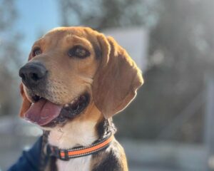 Πρόκειται για θηλυκό Beagle cross περίπου 1 έτους, μεσαίου μεγέθους.