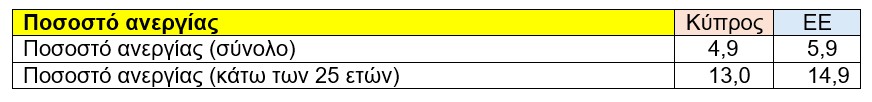 Η σύγκριση αυτή δείχνει ότι η Κύπρος βρίσκεται σε καλύτερη θέση σε σχέση με τον μέσο όρο της ΕΕ, με διαφορά 3,9 ποσοστιαίων μονάδων, γεγονός που αποτελεί θετική ένδειξη ότι η χώρα μας διαθέτει τις βάσεις για περαιτέρω πρόοδο.