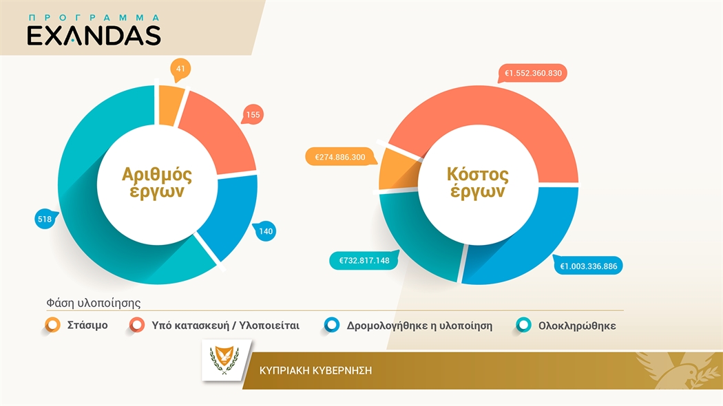 Μέσω του προγράμματος «Εξάντας» και της διαδραστικής ιστοσελίδας www.exandas.presidency.gov.cy, οι πολίτες μπορούν να ενημερώνονται για την πορεία υλοποίησης του κυβερνητικού προγράμματος, να διαβάσουν αναλυτικά στατιστικά στοιχεία, τόσο ανά Δήμο/Κοινότητα όσο και ανά Υπουργείο/Υφυπουργείο ή/και να λάβουν πληροφόρηση για πώς εξελίσσεται ένα έργο ή μια πολιτική που τους επηρεάζει.