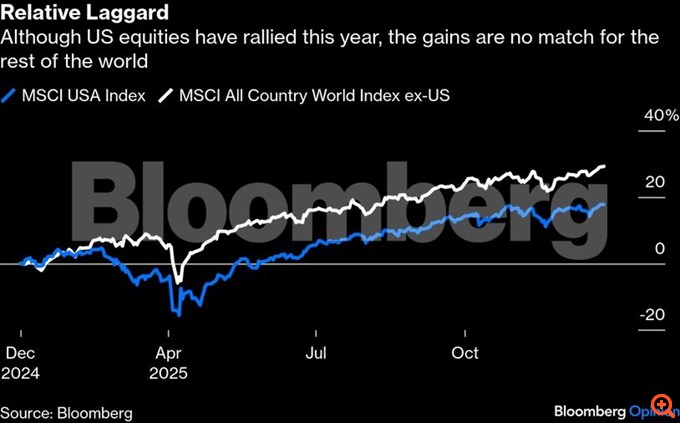 Παρά την άνοδο των αμερικανικών μετοχών, η συνολική εικόνα δεν μπορεί να επικυρώσει εύκολα τον επανειλημμένο ισχυρισμό του Αμερικανού προέδρου Ντόναλντ Τραμπ ότι οι ΗΠΑ είναι η “πιο καυτή” χώρα στον κόσμο. Σε σύγκριση με τον υπόλοιπο κόσμο, η χρηματιστηριακή αγορά της Αμερικής φαίνεται πως μένει πίσω: Τα κέρδη του MSCI USA ωχριούν μπροστά στην άνοδο 29,2% του δείκτη MSCI All Country World (που δεν περιλαμβάνει τις ΗΠΑ).