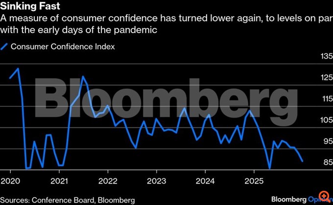 Άλλωστε, δεν είναι περίεργο που τα νοικοκυριά ανησυχούν. Ο δείκτης καταναλωτικής εμπιστοσύνης του Conference Board έχει μειωθεί σε επίπεδα αντίστοιχα με τους πρώτους μήνες που η Covid-19 μάστιζε τον κόσμο. “Οι γραπτές απαντήσεις των καταναλωτών σχετικά με παράγοντες που επηρεάζουν την οικονομία συνέχισαν να καθοδηγούνται από αναφορές σε τιμές και πληθωρισμό, δασμούς και εμπόριο, και πολιτική, με αυξημένες αναφορές για το shutdown της ομοσπονδιακής κυβέρνησης”, δήλωσε η Dana Peterson, επικεφαλής οικονομολόγος του Conference Board.