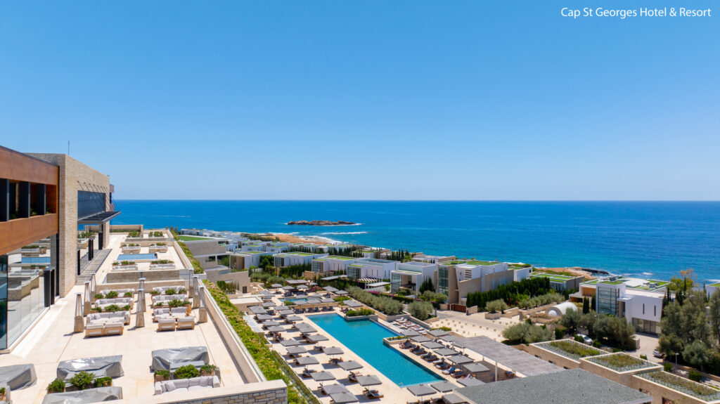 Το πολυβραβευμένο Cap St Georges Hotel & Resort αποτελεί το πιο εμβληματικό έργο της εταιρείας και ένα από τα μεγαλύτερα παραθαλάσσια θέρετρα-προορισμούς της Μεσογείου. Εκτείνεται σε δύο χιλιόμετρα ακτογραμμής στο Ακρωτήρι Αγίου Γεωργίου, στην