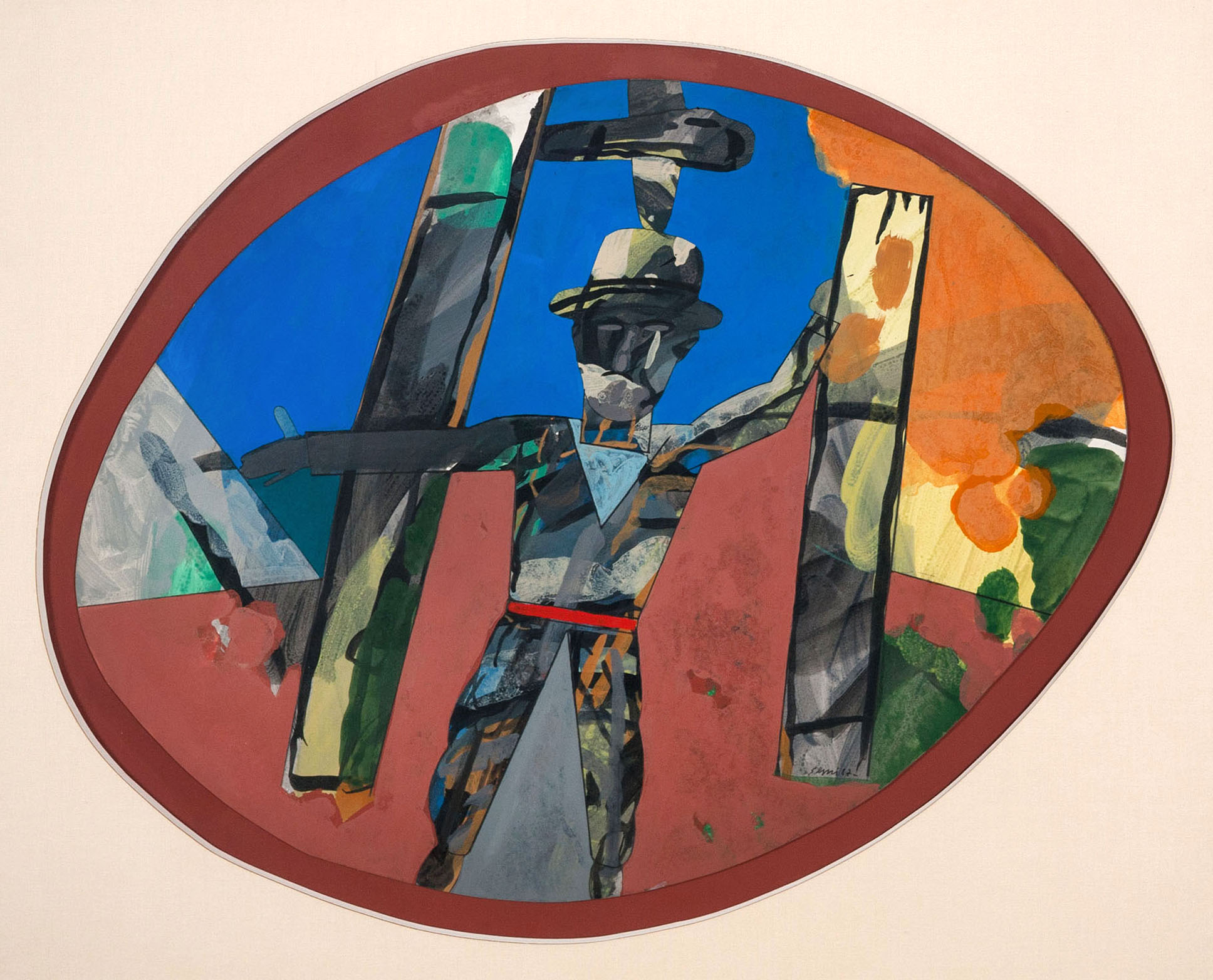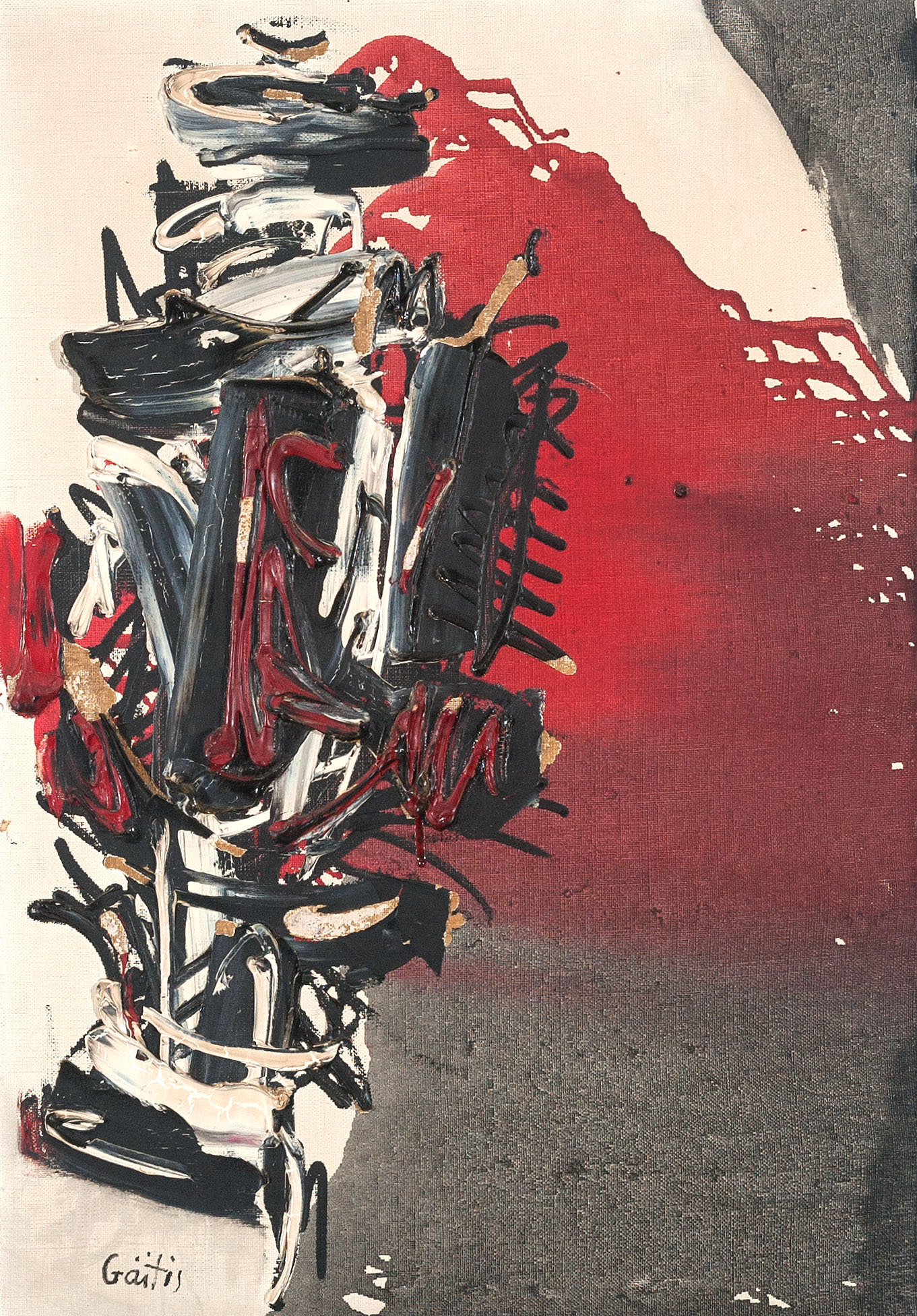 Stencil and Mixed Media on Paper Mounted on Canvas