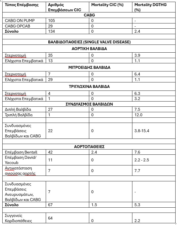 Ακόμη, έγιναν 28 συνδυαστικές επεμβάσεις σε βαλβιδοπάθειες (διπλή η τριπλή βαλβίδα), με μηδενική θνητότητα.