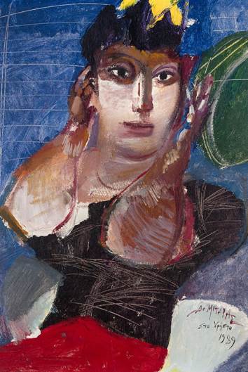 Το έργο ξεχωρίζει για την έντονη εκφραστικότητα και τη δυναμική ζωγραφική του γραφή, με τη μορφή να αποδίδεται μέσα από τολμηρές χρωματικές αντιθέσεις και χειρονομιακές πινελιές. Το βλέμμα της φιγούρας δημιουργεί άμεση και φορτισμένη επικοινωνία με τον θεατή, αποπνέοντας εσωτερικότητα, δύναμη και συναισθηματικό βάθος. Συνιστά σημαντική ευκαιρία απόκτησης για συλλέκτες σύγχρονης και μεταπολεμικής ζωγραφικής, με έντονο εικαστικό και επενδυτικό ενδιαφέρον. Εκτιμάται σε €14.000–16.000.