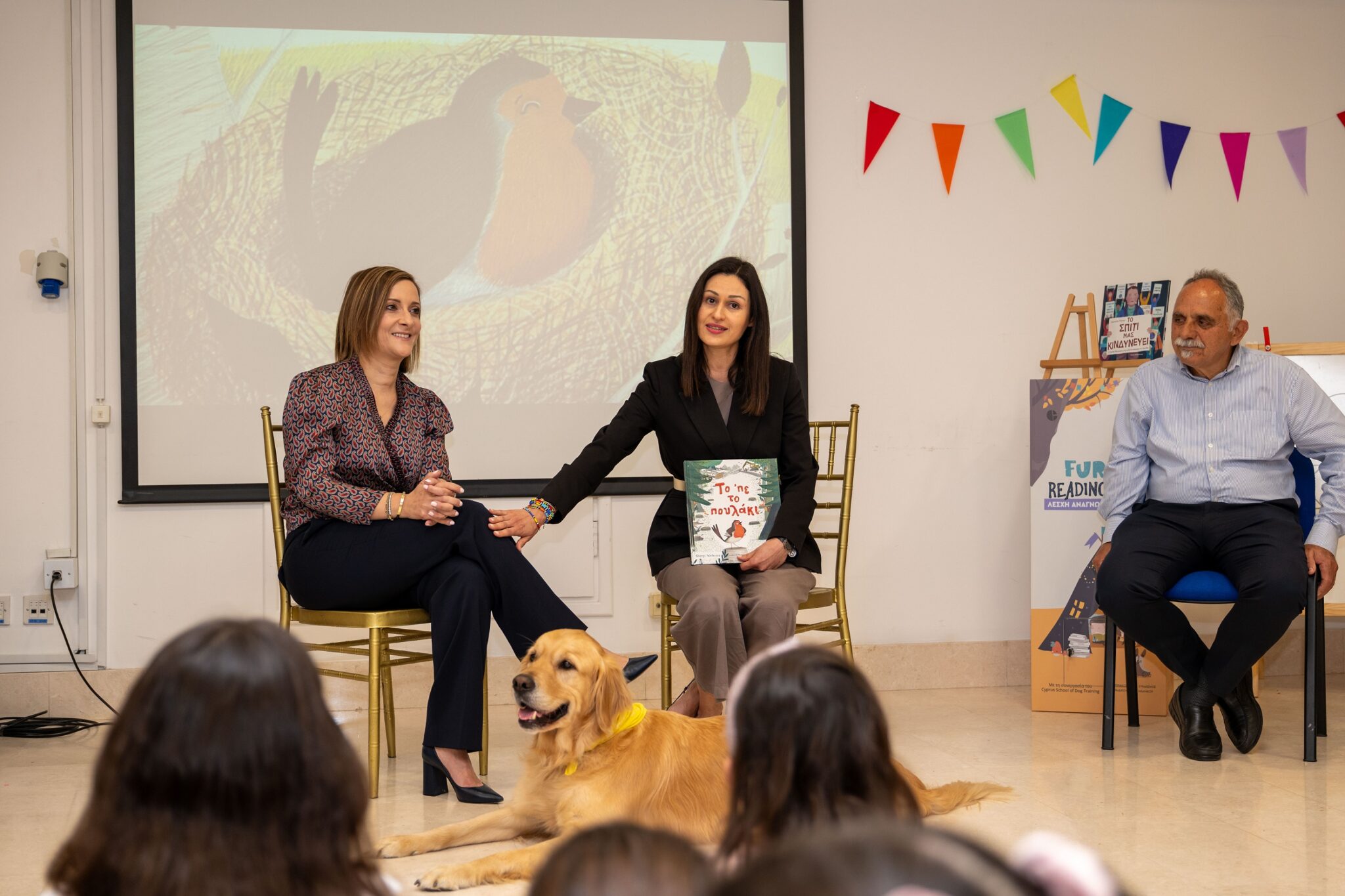 Πέραν από την αφήγηση, τα παιδιά συζητούσαν και διάβαζαν λογοτεχνικά βιβλία με την παρέα ενός εκ των τεσσάρων εκπαιδευμένων σκύλων ανάγνωσης Coda Bear, Forest, Orla και Pitz που βρισκόντουσαν σε ειδικά διαμορφωμένο χώρο στο Κτήριο Διοίκησης της Ελληνικής Τράπεζας. Όπως έχει αποδειχθεί σε πολλές χώρες, προγράμματα φιλαναγνωσίας που έχουν αναπτυχθεί με την παρουσία σκύλων θεραπείας έχουν θετικά αποτελέσματα στη ψυχοσύνθεση των παιδιών, στην ανάπτυξη αναγνωστικών δεξιοτήτων και στην επαφή με τη λογοτεχνία. Η ανάγνωση με τον σκύλο θεραπείας αποδείχθηκε ότι ανακουφίζει το άγχος και το στρες που βιώνουν συχνά τα παιδιά.
